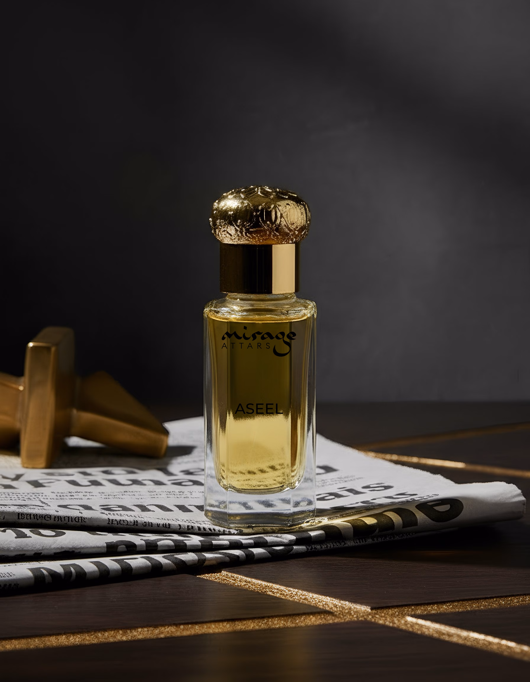 Aseel by Mirage Attars is a traditional oriental attar crafted with depth, warmth, and timeless character. It opens with the intensity of pure oud, setting a deep and powerful tone right from the first drop.